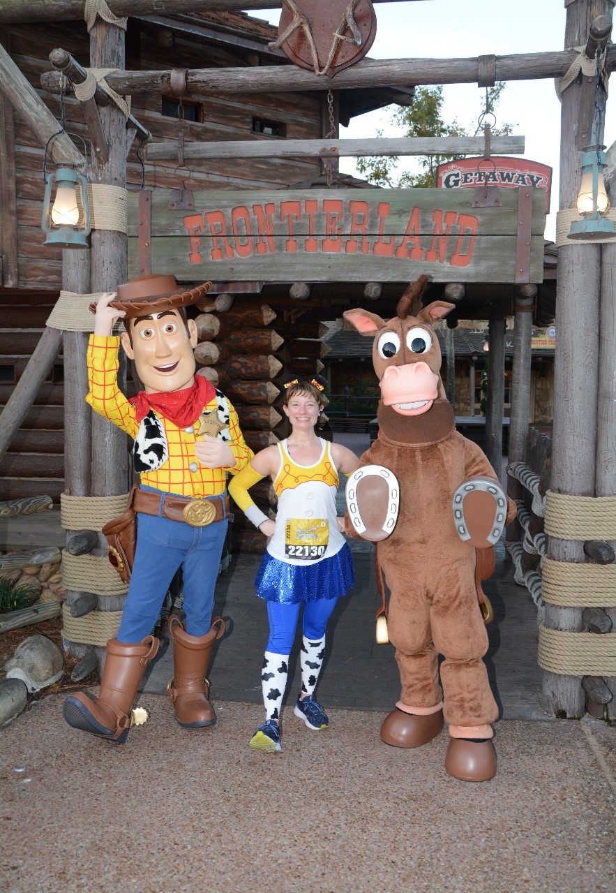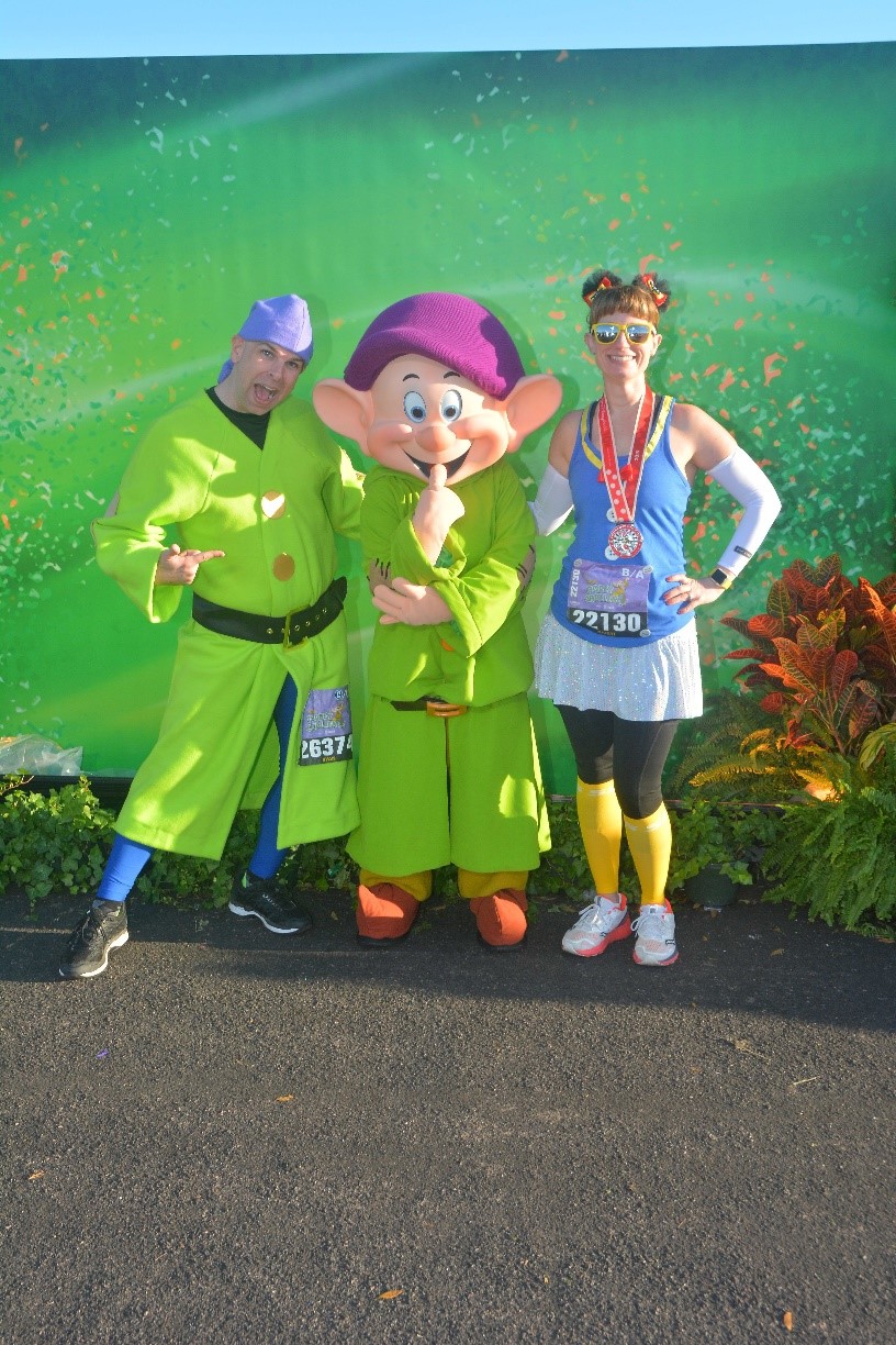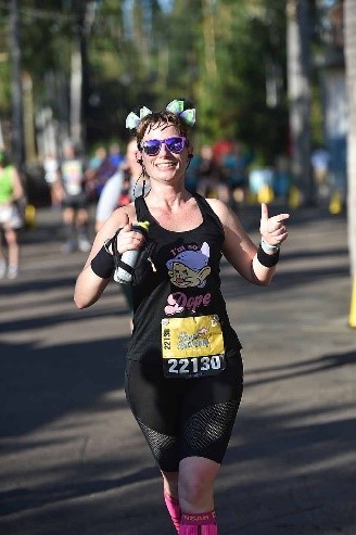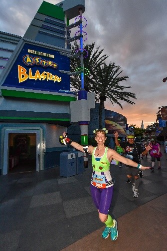For those of you thinking, “There’s no way I could run a race” – Disney’s got your back! Or, your feet in this case. Not only are your fellow runners very encouraging and supportive during the races, but they’re there for you all year long through various social media outlets. Former Olympian Jeff Galloway is the official training partner of runDisney. On their website you can find training plans for each of their races. Jeff utilizes timed intervals for your running, a/k/a RUN-WALK-RUN. For example, for a half marathon I prefer to run for nine minutes and then walk for one minute. That’s what’s comfortable for me. For a full marathon, I will run four minutes and then walk 30 seconds. Find what works for you, but don’t feel like you MUST run the whole thing. In fact, since runDisney has a 16-minute per mile pace, many people are able to speed walk the entire race (including the full marathon). All it takes is training. And, in the middle of your training, you just might decide you really enjoy it.