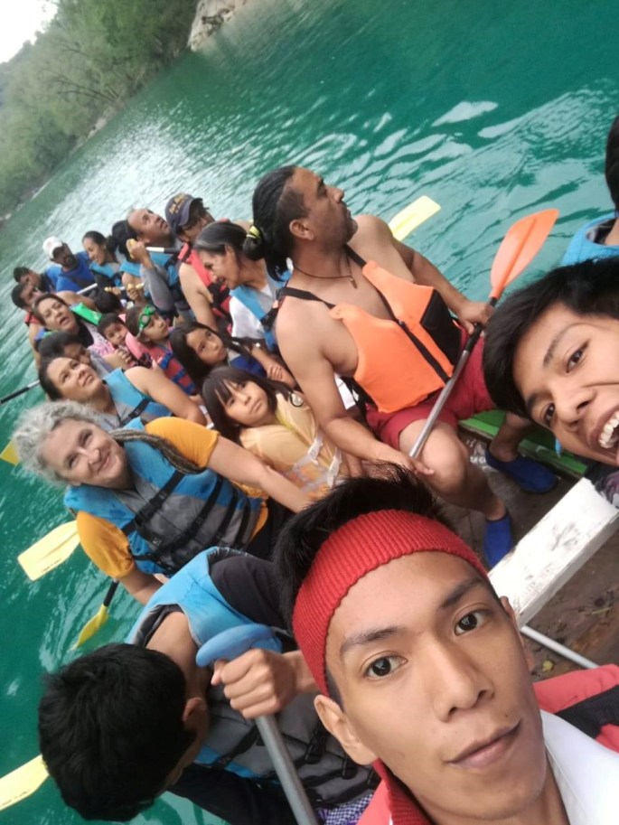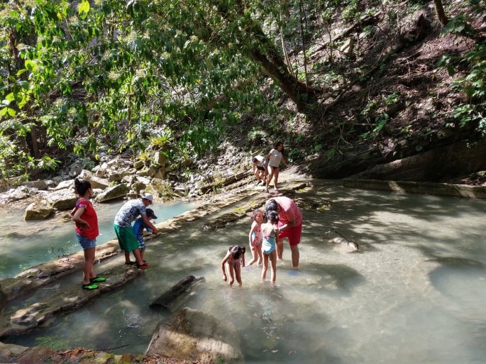 The guide charged us 120MXN/$6USD per person, children half-price, including life vests, long wooden boat and oars, with two guides. We rowed about 20 minutes, then got out and walked for five minutes up the riverbank, as the two guides got out and pulled the boat up the rapids. After another 20 minutes of rowing (about 4km altogether), we could see the falls from below. The guide said that February is the best time to visit – in late March and early April, the tourists coming during Semana Santa make it too crowded, and by June and July, the river is 60 feet higher and impassable.