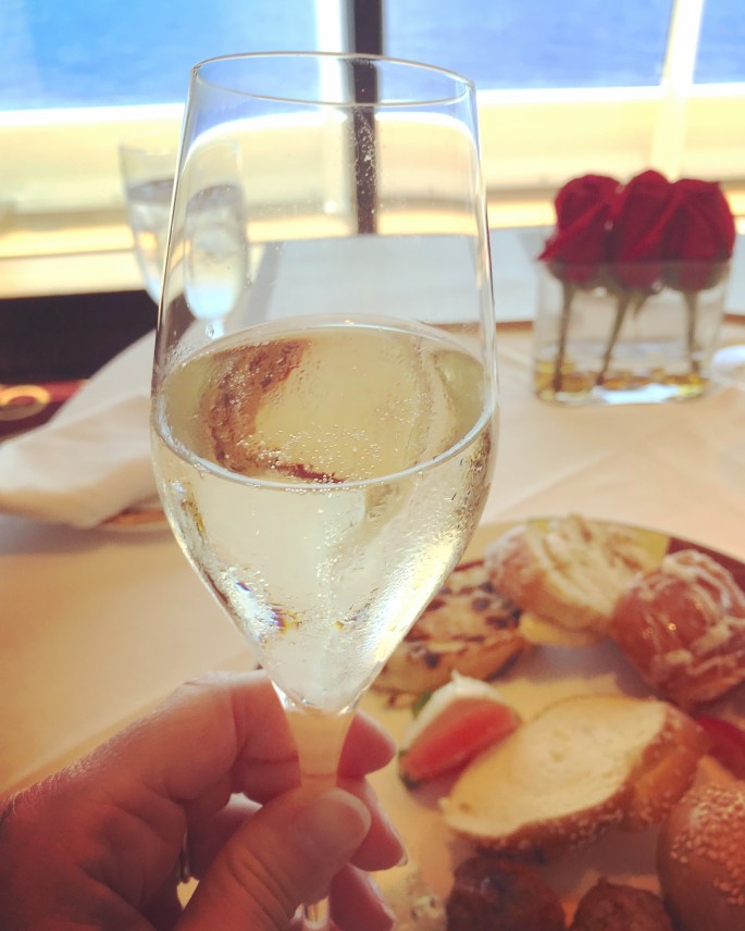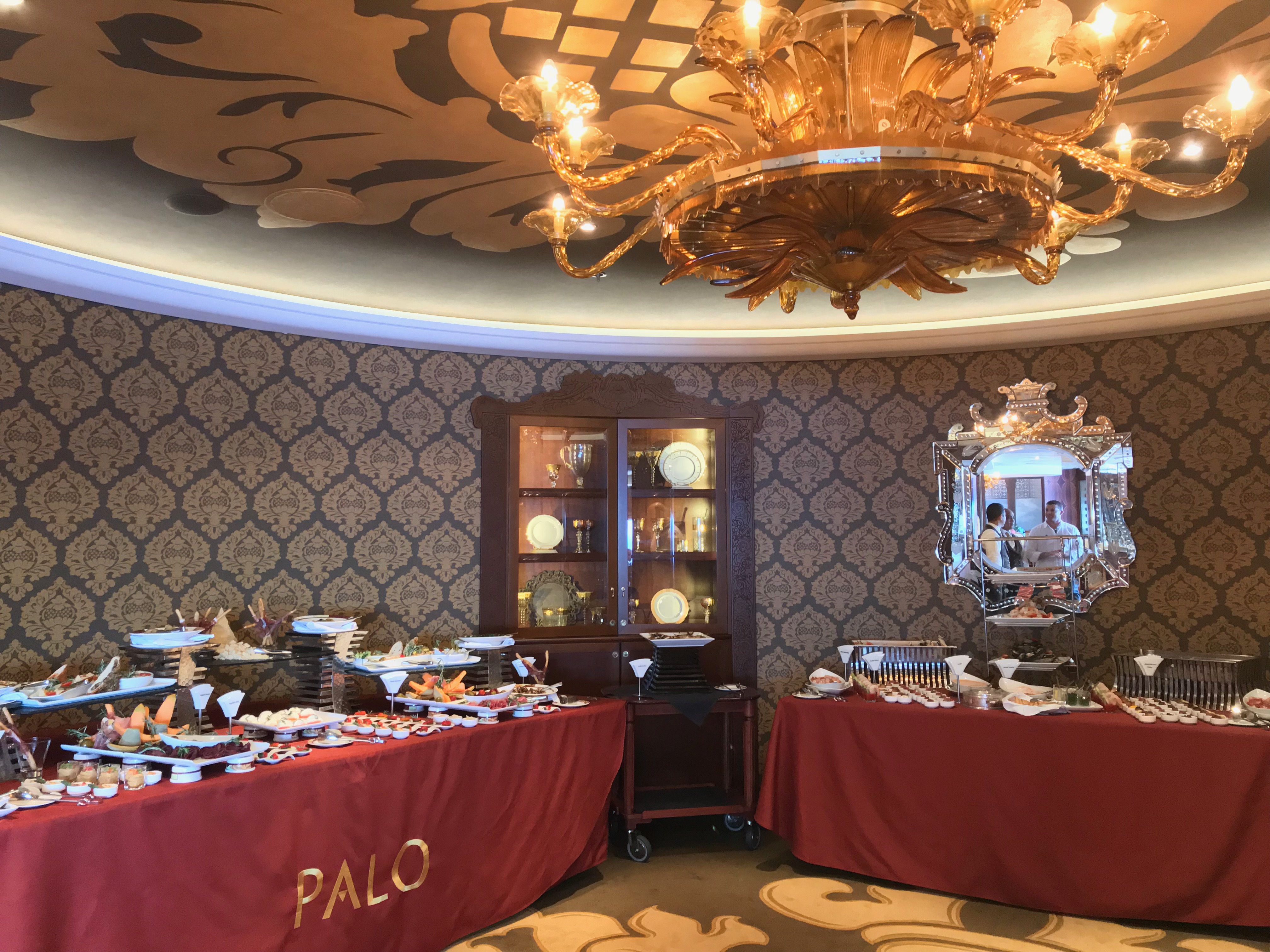 And, once again, after breakfast, my husband headed for the gym, while my son and I hung out in our stateroom. Then, when my husband returned, I went to the gym. Our goal was to be ready fairly early, as we had a 12:30pm brunch reservation at Palo to celebrate our wedding anniversary. This would be our first time dining at this adults-only venue; in fact, it would be our first time to ever do any adults-only activity on a Disney cruise, even though it was our third time on a Disney cruise ship. We couldn’t wait!