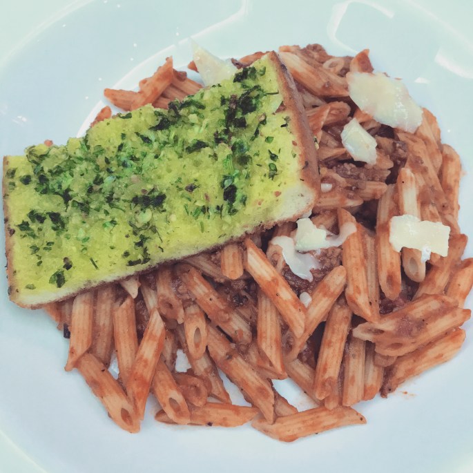 My entrée was the Pennete Bolognese, which was very good. The toasted garlic ciabatta bread that came with it was excellent: