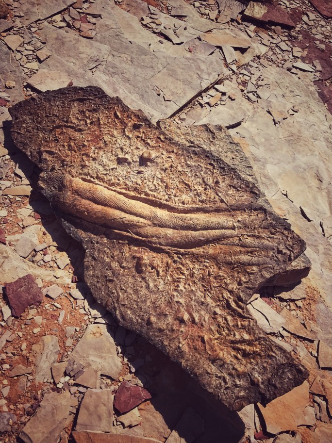 We drove south of the Wadi Rum desert in the southernmost part of Jordan to launch for a hike in Wadi Nudra. Salem’s someone who can read people well and picked up on the fact that I’m comfortable with height, just not steep routes. So he picked a hike with a steady climb to a cave high above the desert. Along the way Salem pointed out fossils, sage brush for our tea later in the day, along with a woman’s shoe, left behind by one of the local women who herd the goats on the mountains.