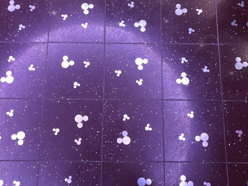 Once again, I was completely stuffed after dinner. While we were walking out of the restaurant, I snapped a few pics of hidden mickeys and other cute details. Here is a photo of the floor tiles: