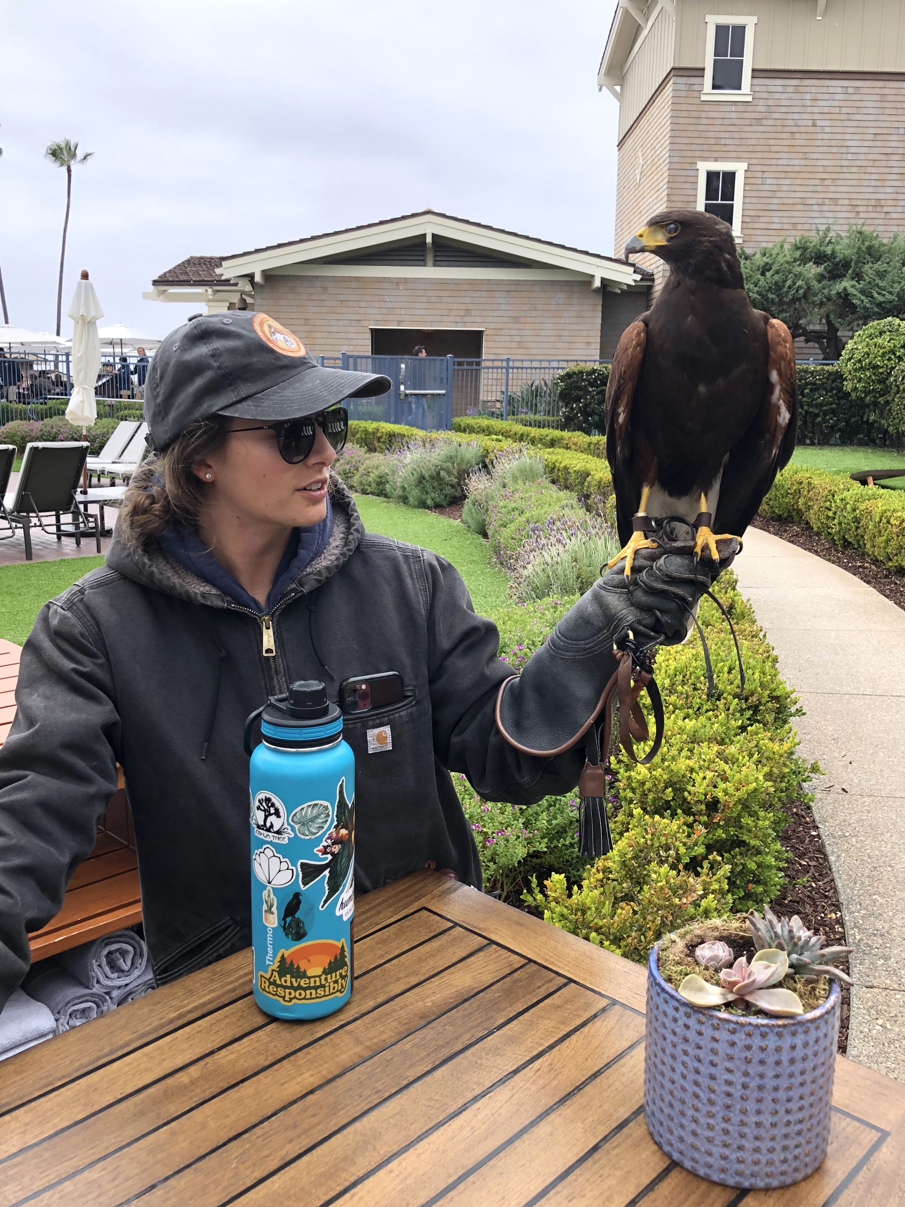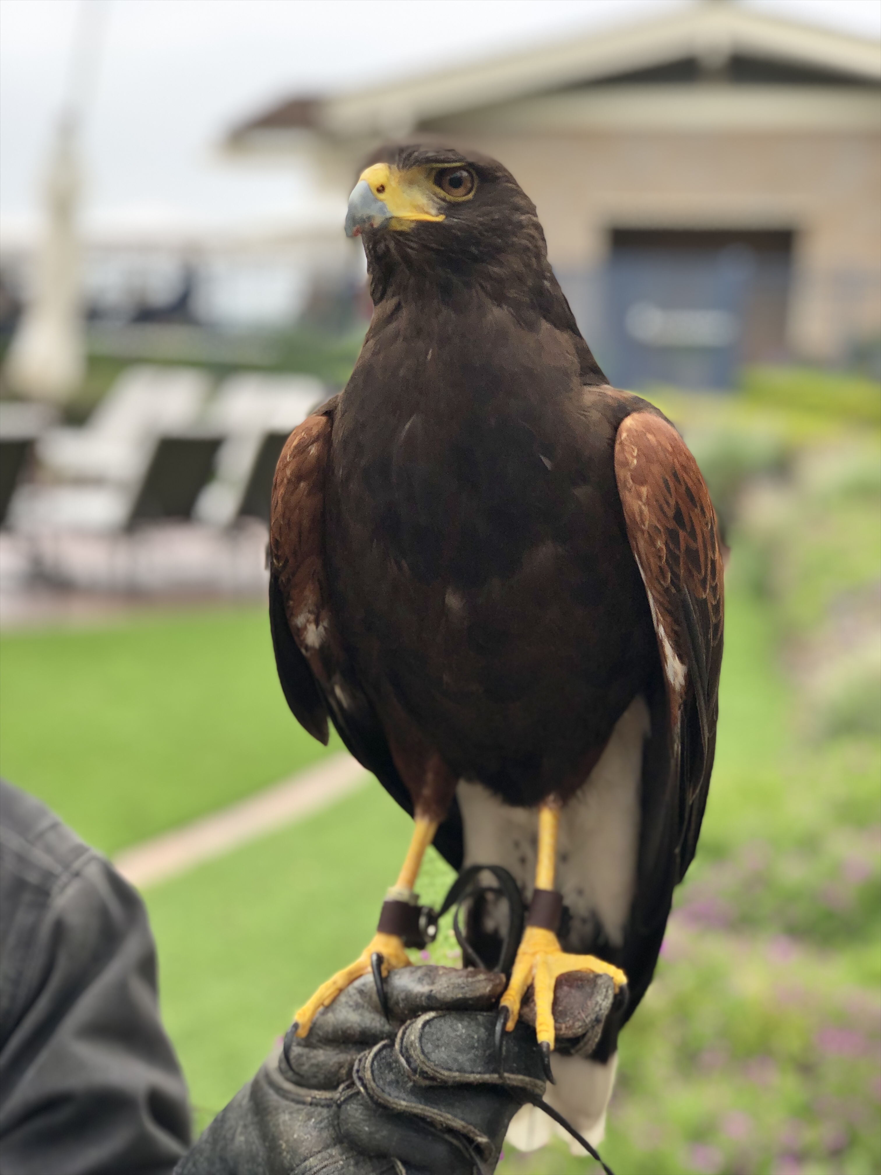 You can check out a panoramic view of the pool in my YouTube video. One unique thing about the main pool area is the hotel’s resident Harris’ Hawk, “Fox.” Fox flies around and keeps all the sea gulls from bothering the guests! We got to meet him and his keeper and were enthralled with this amazing bird.